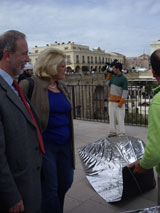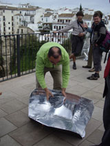 Le Professeur Celestino RUIVO de la Escola Superior de Technologia de l'Universidade do Algarve a présenté aux jeunes participants et aux adultes intéressés les possibilités offertes par l'utilisation de l'energie solaire pour les activités culinaires. Pour plus d'informations, vous pouvez le contacter directement ou consulter le site web de l'association fondée par ses soins : Solar Cookers International Association. |