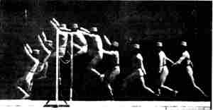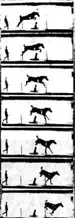 Muybridge : c'est sur la base des travaux de Marey sur la locomotion du cheval que Muybridge réalisera ses premières photographies ; c'est à partir des photographies de Muybridge de 1878, et de leur publication dans "La Nature" que Marey se décidera à pratiquer lui-même cette technique, avec un système différent de celui de Muybridge, qui utilise 12 ou 24 appareils en batterie.
