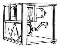 - Vue du mécanisme du chronophorographe à pellicule mobile de 1890.